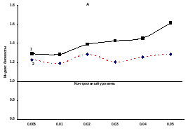 | Контроль 0.1 0.2 | 0.52 0.67* 0.81* | 0.03 0.04 0.05 | 0.52 0.74* 0.97* | 0.03 0.04 0.06 | 0.18 0.25 0.37* | 0.01 0.03 0.02 | 0.18 0.35* 0.57* | 0.01 0.03 0.02 |