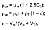 Вязкость и плотность таких систем могут меняться и с учетом объемной концентрации С0 рассчитываются по формулам: