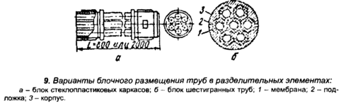 По конструкциям и способам изготовления элементы делят на три типа: 1) с подачей разделяемых сред внутрь трубки; 2) с подачей разделяемых сред снаружи трубки; 3) с подачей разделяемых сред одновременно внутрь и снаружи трубки.