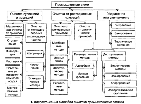 4) воды, содержащие вещества, диссоциирующие на ионы. Способы очистки промышленных стоков можно классифицировать по составу фаз, дисперсному и химическому составу. Рассмотрим основные из этих методов.