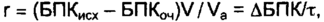 где АБПК = БПКисх – БПК0Ч – разность между БПК исходной и очищенной воды, г 02/м3; V – расход сточных вод, м3/ч; Va – рабочий объем аэротенка, м3; т = iyV – время аэрации, ч.