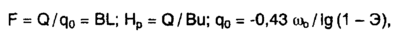Площадь зеркала воды F, глубину Нр и удельную нагрузку по воде qQ определяют из зависимостей: