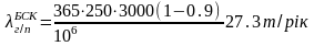 ДК3 – допустима концентрація забруднюючої речовини, що забезпечить дотримання нормативів на скидання стічних вод у водний об'єкт після комунальних очисних споруд, г/м3;