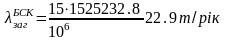 Qзаг = 365· 4264· 0,98 = 1525232,8м³/рік