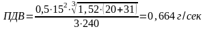 В - объем выбросов, м3/сек;