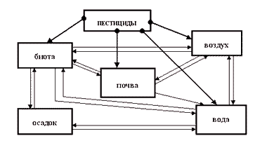 Рисунок 1 - Накопление и миграция пестицидов в окружающей среде