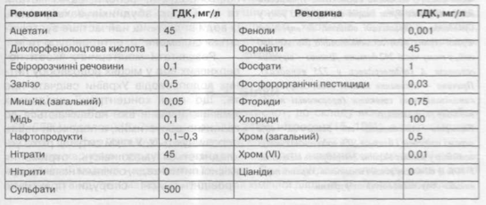 Таблиця 1. Гранично допустимі концентрації шкідливих речовин у питній воді