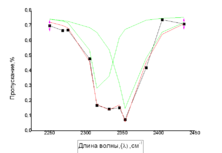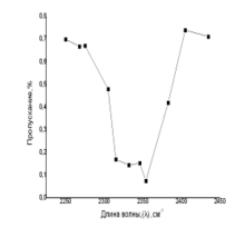 Анализ ИК спектров поглощения оксида углерода (рис. 2, а) показывает, что имеются две близко расположенные полосы поглощения, контуры которых могут быть описаны кривыми Лоренца с применением метода наименьших квадратов (рис. 2, б).