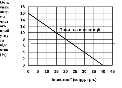 | Очікувана норма чистого прибутку (у %) | Величина інвестицій (млрд.грн . у рік) |