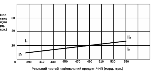 | Рівень виробництва і дохід | Інвестиції In | Інвестиції I'n |