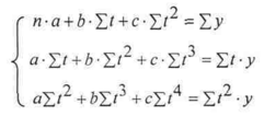 Значення а, b, с для рівняння параболи визначаються вирішенням наступної системи рівнянь: