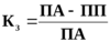По-друге, можлива і така ситуація, коли Кл і Кз рівнозначні нормативному значенню на кінець звітного періоду, або вище цього рівня, але намітилась загальна тенденція до зниження. Тоді доцільно розрахувати коефіцієнт втрати платоспроможності, який вказує на період збереження, або навпаки, платоспроможності (наприклад, цей період рівний 3 місяцям), тоді цей коефіцієнт розраховується за формулою: