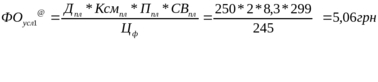 Третий условный показатель фондоотдачи рассчитывается при фактической его структуре, фактическом количестве отработанных дней, фактическом коэффициенте сменности и при плановом уровне остальных факторов: