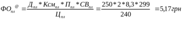 Далее установим, какой была бы фондоотдача при фактической структуре оборудования и фактическом количестве отработанных дней, но при плановой величине остальных факторов: