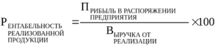 Другой важный коэффициент - рентабельность реализованной продукции - (рентабельность продаж) рассчитывается по формуле: