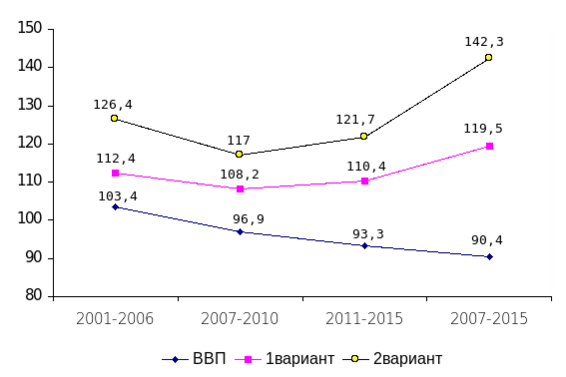 | ВВП | 103,4 | 96,9 | 93,3 | 90,4 |