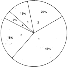 | Рис. 1. Источники финансирования зарубежных филиалов американских корпораций 1 - физические и юридические лица в принимающих странах; 2 - физические и юридические лица из третьих стран; 3 - головные компании; 4 - физические и юридические лица в США; 5 - самофинансирование за счет рефинансирования и пр. источники |