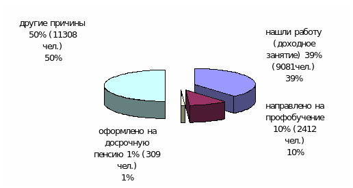 Из зарегистрированных безработных трудоустраивались 26,3% в 1994г. и 38,7% в 1997г., что является положительной тенденцией в сфере трудоустройства.