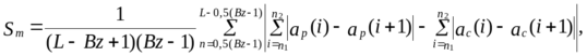 В качестве простейшей дифференциальной оценки сходства используется разность между численными производными сравниваемых отрезков сейсмических трасс, при этом для большей устойчивости численные производные сглаживаются путем суммирования на малой базе Вz. Конкретно, вычисляется модульная оценка