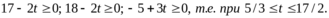 является оптимальным планом и тогда среди его компонентов не окажется отрицательных чисел, т.е. при 5-3t