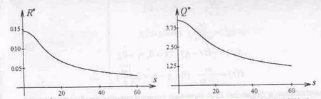 | Рис.9. График равновесного значения R* в зависимости от величины заработной платы s | Рис. 10. График равновесного значения Q* величины производимого продукта в зависимости от уровня заработной платы |