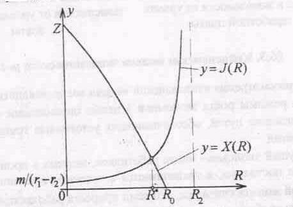В силу отмеченных выше свойств функций (17) и (18), входящих в левую и правую части уравнения (19), графики функций J(R) и X(R) имеют вид кривых, изображенных на рис. 7.