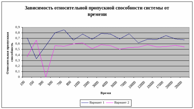 writeln('Относительная пропускная способность системы: ',(served1+served2)/S:2:3);