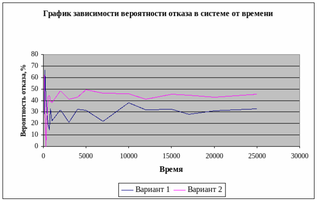 writeln('Вероятность отказа : ',(not_served1+not_served2)/S*100:2:1,'%');