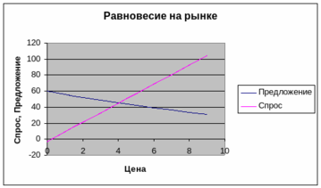 Рассмотрим нахождение равновесной цены и объема продаж для рынка некоторого товара.