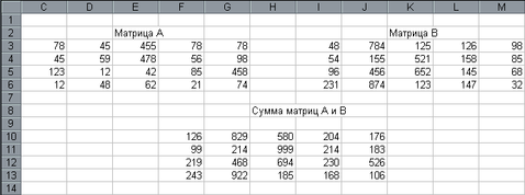 На примере проиллюстрируем некоторые из этих функций. Найдем сумму двух матриц А(5*4) и В(5*4) и транспонируем матрицу-результат.