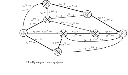 Итак, сетевой график – есть математическая модель упорядочивания проектных работ типа “Сигнальный граф” (см. пример на рис.Error: Reference source not found). Любой сигнальный граф состоит только из двух элементов: дуг и вершин. В контексте сетевого планирования, дугами являются отдельные работы, изображаемые на сетевом графике в виде стрелок так, что начала стрелок, соответствует началам выполнения работ, концы стрелок – их завершению. Вершинами сигнального графа являются так называемые события, которые изображаются на сетевом графике в виде кружков, с порядковыми номерами в нижних квадрантах. Как раз события сетевого графика и служат для целей упорядочивания проектных работ, которое заключается в том, что исходящая из некоторого события работа не может начаться, пока не завершаться все входящие в него работы.