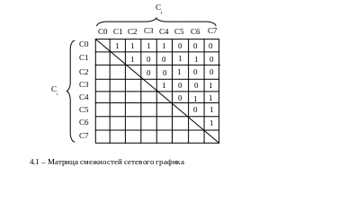 . Пример данной матрицы для структуры сетевого графика на рисунке Error: Reference source not foundпредставлен на рисунке Error: Reference source not found.