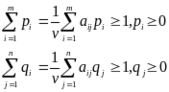 Так, нехай задана матрична гра з матрицею А=( аij) порядку m*n. Оптимальні змішані стратегії x(x1,...,xi,....,xm), y(y1,....,yi,.....,yn) відповідно першого і другого гравця і ціна гри v повинна задовільняти умовам: