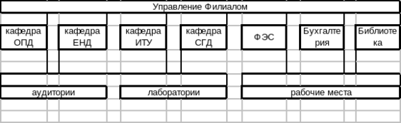 Кафедры являются основными подсистемами системы «Филиал». Их главными целями являются образовательный процесс, проведение научных исследований и научно-методической работы.