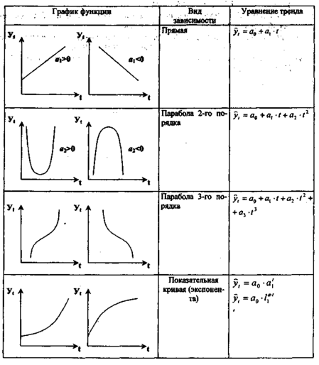 |   Вид зависимости  |    Уравнение тренда  |    Система уравнений  |