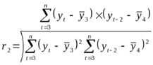 можно определить коэффициенты автокорреляции второго и более высоких порядков. Так, коэффициент автокорреляции второго порядка характеризует тесноту связи между уровнями уt и yt-1 и определяется по формуле: