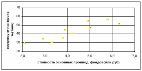 4.1. Исходные данные отложить на координатной плоскости и сделать предварительное заключение о наличии связи.