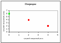 Красным цветом высвечены доминируемые точки (операции), а зеленым – недоминируемые, т.е. оптимальные по Парето. Оптимальной по Парето является 4-я операция.