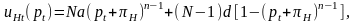 Пропорции игроков с различными стратегиями обозначаются: H = mH / P - всегда честные; C = mC / P - всегда коррумпированные; Ht = nHt / P - честные оппортунисты; pCt = nCt / Р - коррумпированные оппортунисты, вычисляемые как число соответствующих игроков по отношению к общему числу игроков. Число оппортунистов принимается за N. Поскольку суперигра осуществляется со случайно выбранными оппонентами, вероятность сыграть против n - 1 относительно честного игрока равна (pHt + Ht)n-1, a вероятность наткнуться хотя бы на одного нечестного – (1 - (pHt + Ht)n-1). В каждой суперигре ожидаемая прибыль от стратегий складывается из общих прибылей каждого шага; соответственно вычислить значения uHt и uCt и получить значение фактора нормализации Z. Обозначим pHt как рt для простоты и, следовательно, pCt за (N/P) - pt получаем главное уравнение эволюции во времени доли оппортунистически честных игроков