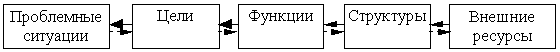 Легко заметить, что цепочка "проблемная ситуация, цели, функция, структура, внешние ресурсы" образует логически обоснованную (на содержательном уровне) последовательность системной деятельности (рис.1.6), и может использоваться как на этапах анализа (исследования), так и синтеза (проектирования) систем.