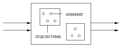 ледующим уровнем моделирования сложных систем являются модели состава систем. При рассмотрении любой системы прежде всего обнаруживается, что ее целостность и обособленность выступают как внешнее свойство. Вместе с тем внутренняя структура системы также является многообразной, неоднородной и состоит из множества неделимых функциональных элементов. Декомпозиция внутренней структуры "черного ящика" на более мелкие составляющие (подсистемы, отдельные элементы) позволяют строить модели состава систем (рис. 1.8).