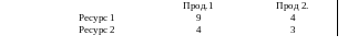 Построить задачу составления плана производства фирмы, производящей два вида продукции, использующей два вида ресурсов и реализующей продукцию по ценам 450 рублей и 400 рублей соответственно. Технологическая матрица задана в виде таблицы