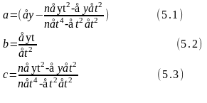 По итоговым данным таблицы определяем по формуле (5.1) - а ,по формуле (5.2) - b ,по формуле (5.3) - с .
