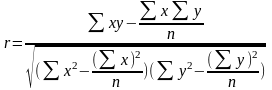 Определим тесноту связи между этими двумя параметрами.Это выполняется посредством определения показателя коэффициента корреляции r. Матрица расчетных показателей приведена в таб.1 . Определяем значение r по формуле :