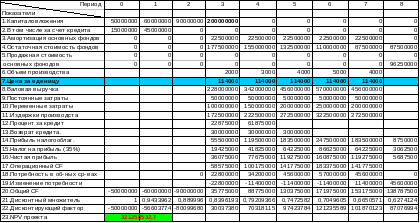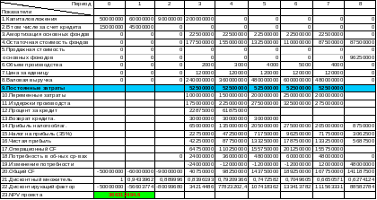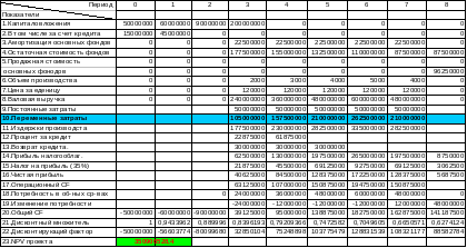 | 20.Общий CF | -50000000 | -60000000 | -90000000 | 42375000 | 99875000 | 145375000 | 190875000 | 169375000 | 141187500 | |
