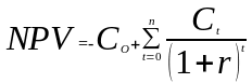 NPV, или чистая приведенная стоимость проекта является важнейшим критерием, по которому судят о целесообразности инвестирования в данный проект. Для определения NPV необходимо спрогнозировать величину финансовых потоков в каждый год проекта, а затем привести их к общему знаменателю для возможности сравнения во времени. Чистая приведенная стоимость определяется по формуле: