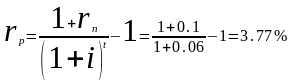 В нашем случае номинальная ставка дисконтирования равна 10%, тогда, учитывая темп инфляции 6% в год, реальная ставка дисконтирования составляет: 3,77%