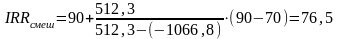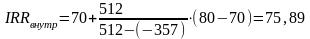 Точка, в которой кривая пересекает ось Х дает искомое значение IRR. Для точного определения этого значения можно воспользоваться формулой: