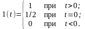 Единичная ступенчатая функция 1(t). С описательной точки зрения это функция, которая равна нулю в отрицательные моменты времени и единице - в положительные. Принципиальным недостатком таких функций является то, что они не дифференцируемы, тогда как основной математической моделью теории автоматического управления является дифференциальное уравнение.