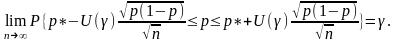 сожалению, это соотношение нельзя непосредственно использовать для доверительного оценивания, поскольку верхняя и нижняя границы зависят от неизвестной вероятности. Однако с помощью метода наследования сходимости [4, п.2.4] можно доказать, что